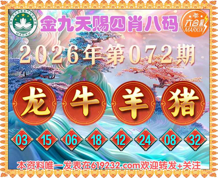 072期:【金九天赐】 🚣四肖八码🚣【龙牛羊猪】开:00准